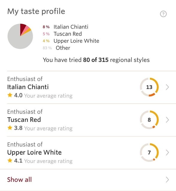 This picture is from my Vivino profile, which is the app I use to track everything I drink. Those seven Upper Loire white wines were accumulated in the past six months, while those Italian wines have been accumulating for the past three and a half years I’ve been using the app. Go Loire go!